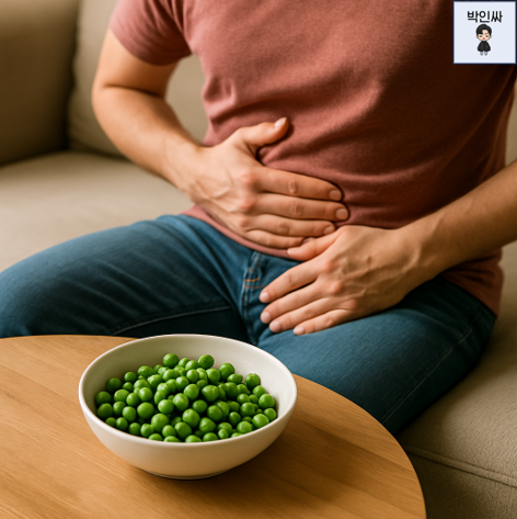 “완두콩을 먹을 때 주의할 부작용이 있나요?”