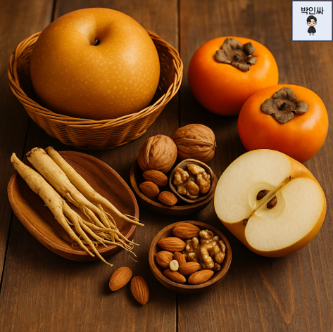 3.배, 도라지, 감, 고등어, 견과류 등은 면역력 강화와 건조함 완화에 효과적이에요.