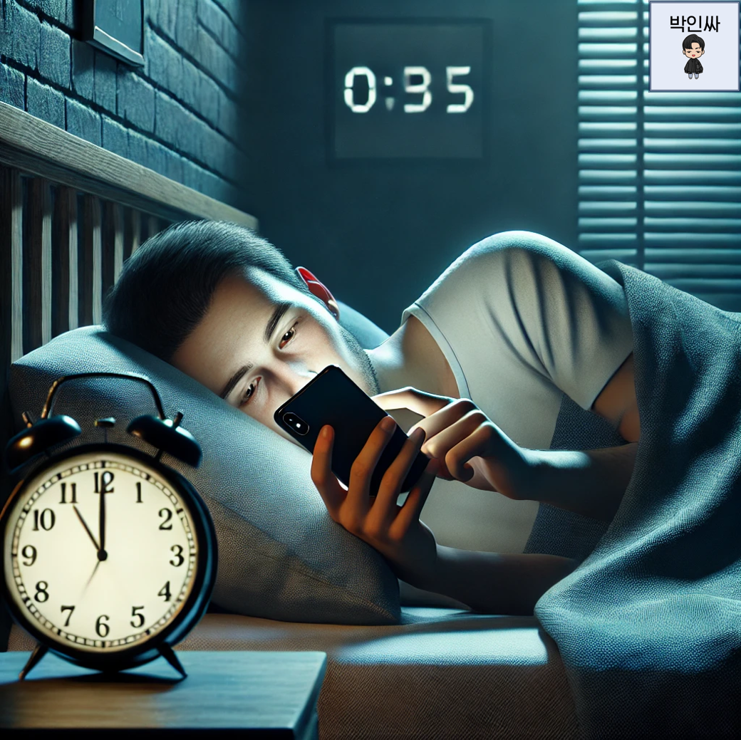 - 늦은 밤 스마트폰, TV 시청: 빛 자극은 뇌를 각성시키고 수면 호르몬 분비를 줄입니다.