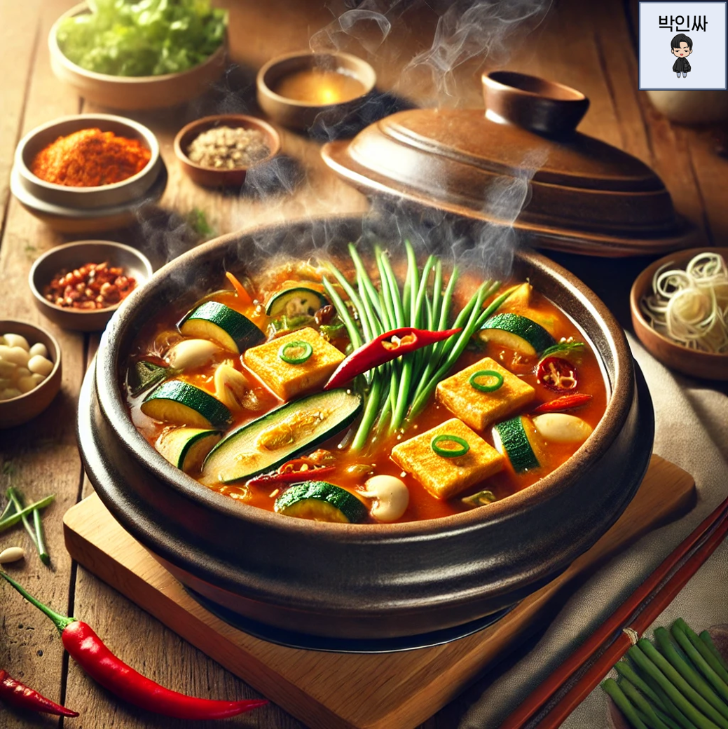 - 달래 한 줌, 된장 2큰술, 두부 반 모, 애호박, 양파, 청양고추, 멸치 육수 500ml