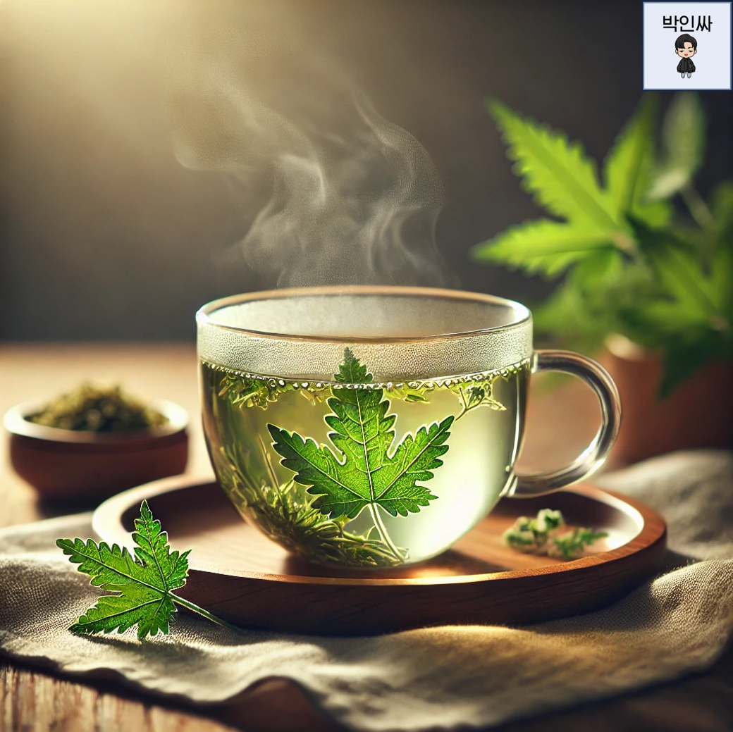 쑥을 생으로 먹기 부담스럽다면 쑥차로 즐기는 것도 좋은 방법이에요.